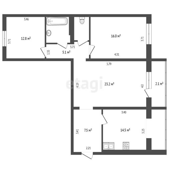 - Площадь кухни14.5 м²